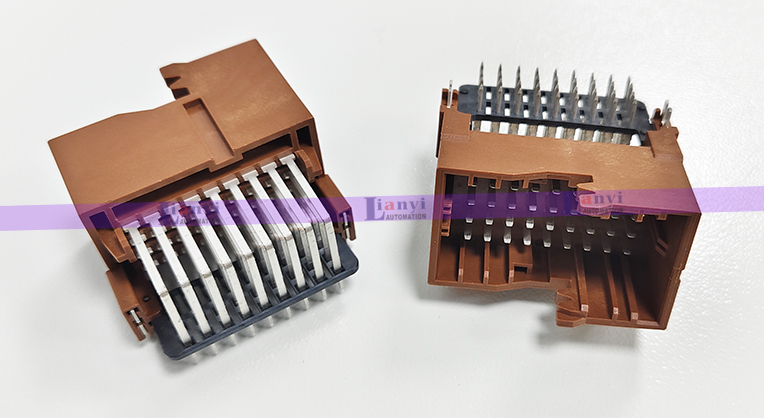 2、自動組裝:夾取工具把連接器塑膠殼夾取到組裝工位,進行自動組裝。